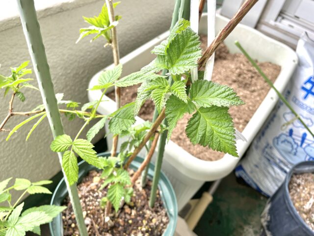 そんな中、暑さを苦手とするラズベリーがなんとか夏越しして、今年の春も元気に芽を出しました。